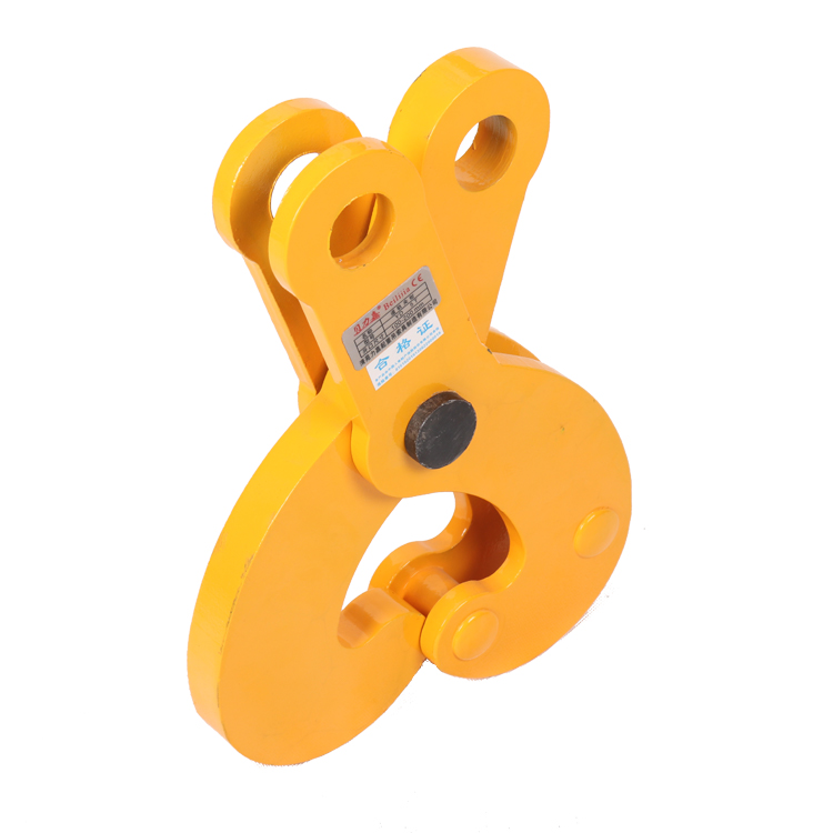 单板 起重吊钳 简称单板钳或钢板钩,其连板端铰接钳板,另一端的轮轴上安装滚轮和开口螺母,通过滚轮与钢丝绳连接,单板起重钳适用于钢板的水平吊运,载荷能力10t它采用优质低碳